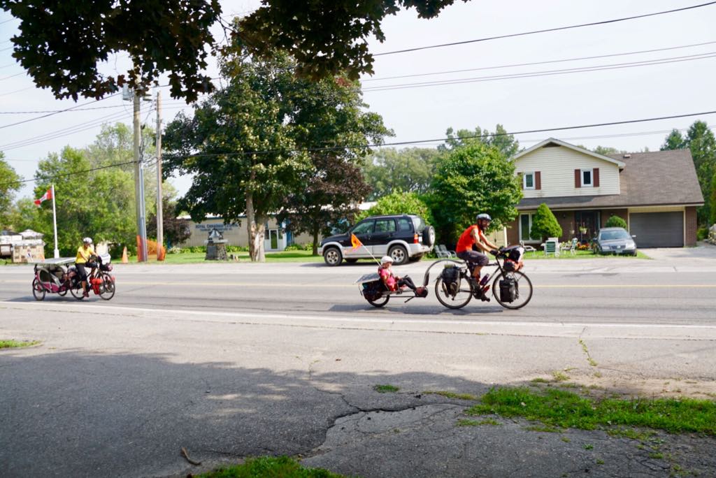 We meet them first at the road side, where they are taking a break, and stop to check that they are OK. They pass us when we are taking a break, and then I think we are never going to catch them … they are going to the same place as us tonight – Cobourg. Though I suspect while we are bunkering down in our cool and comfortable B&B tonight, they will be unloading kids, putting up tents, and cooking a campside diner.