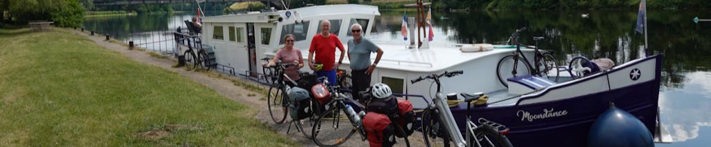 They’ve ridden from Basel (Switzerland) to meet up with their friends Deb and Howard who spend their European summers cruising the inland waterways of Europe on their barge Moondance. They met Moondance in Nevers last week and have turned back east, cruising slowly along the Canal Lateral á la Loire to Decize.