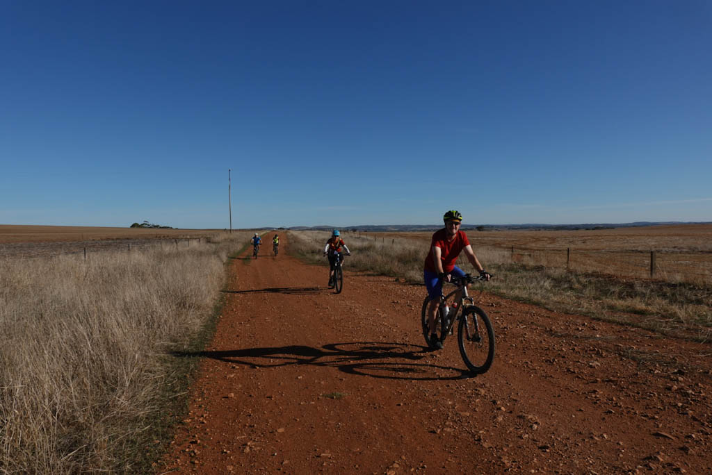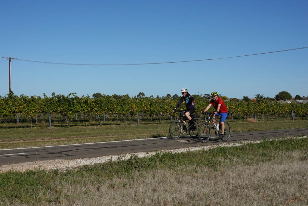 After an ice cream, because I had a ‘procedure’ we drive back to where we left off, then follow the route the others have taken, catching up with them some 15km before the end. They’ve had a lovely time visiting the Eden Valley township, and winding their way on roads that take them up and down towards Palmer.