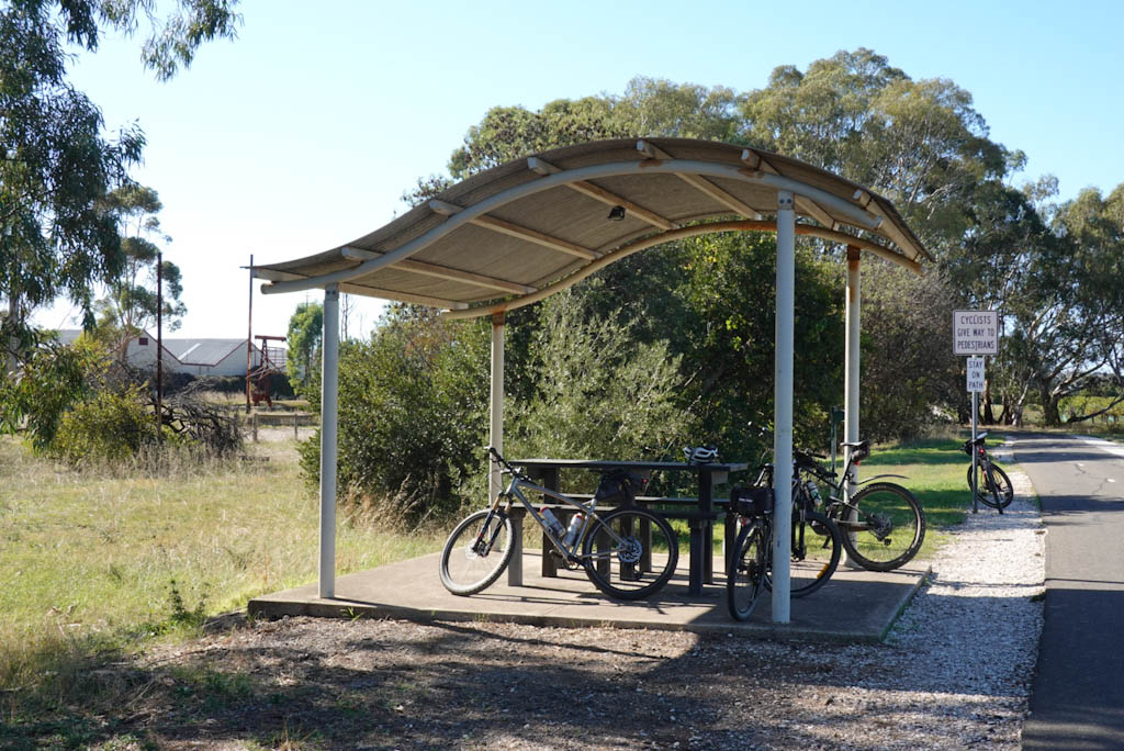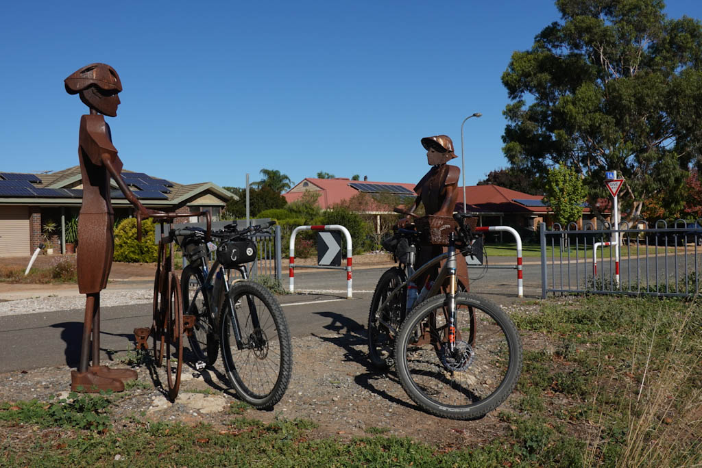 In Palmer we load the bikes up, a job that seems to get no easier, with plenty of adjustments needed until all the bikes are settled and solid. We’ll be back in Palmer again tomorrow to continue riding, but for now it is a drive to Murray Bridge, then across the river to Avoca Dell where we are staying the next two nights at the caravan park.