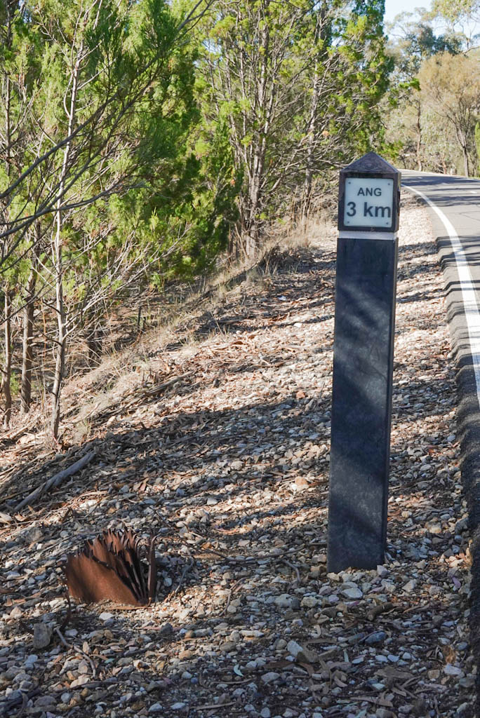 Back on the bikes we pass through the streets of Angaston, stopping to visit Ninnes Grove before hitting the main road, passing by Collinsgrove (I don’t think the Ninnes party had to dodge cars on their trip) before turning onto the ominously named Hill Climb Road.