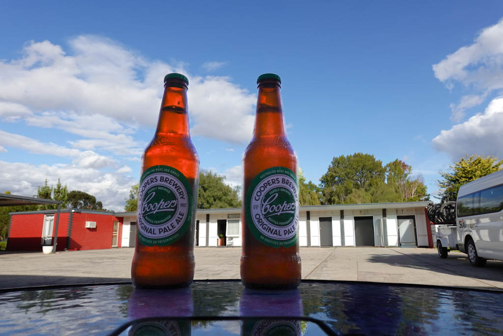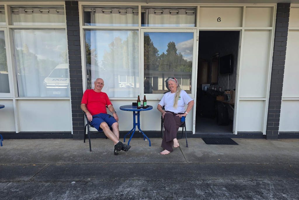 At the end of a day’s ride, our tradition is to enjoy a beer, and to photograph it for posterity. Today’s beer picture was taken at The Edenhope Motel. Even though I wasn’t riding I took a picture, and borrowed one from Pat Dorey, both of which show the salubriousness of our surroundsings.