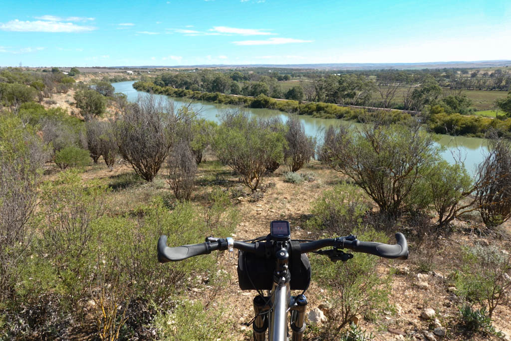 It’s not too long before we get first glimpses of the Murray River. (Sure, we saw the river last night at Avoca Dell, but this story is about cycling, and what we see along the way.) It is far off, then closer, then closer, then we find a spot where we look right out onto the river.