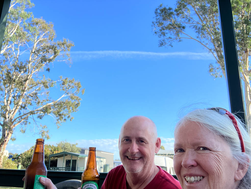 At the end of a day’s ride, our tradition is to enjoy a beer, and to photograph it for posterity. Today’s beer picture was taken at the Avoca Dell caravan park.